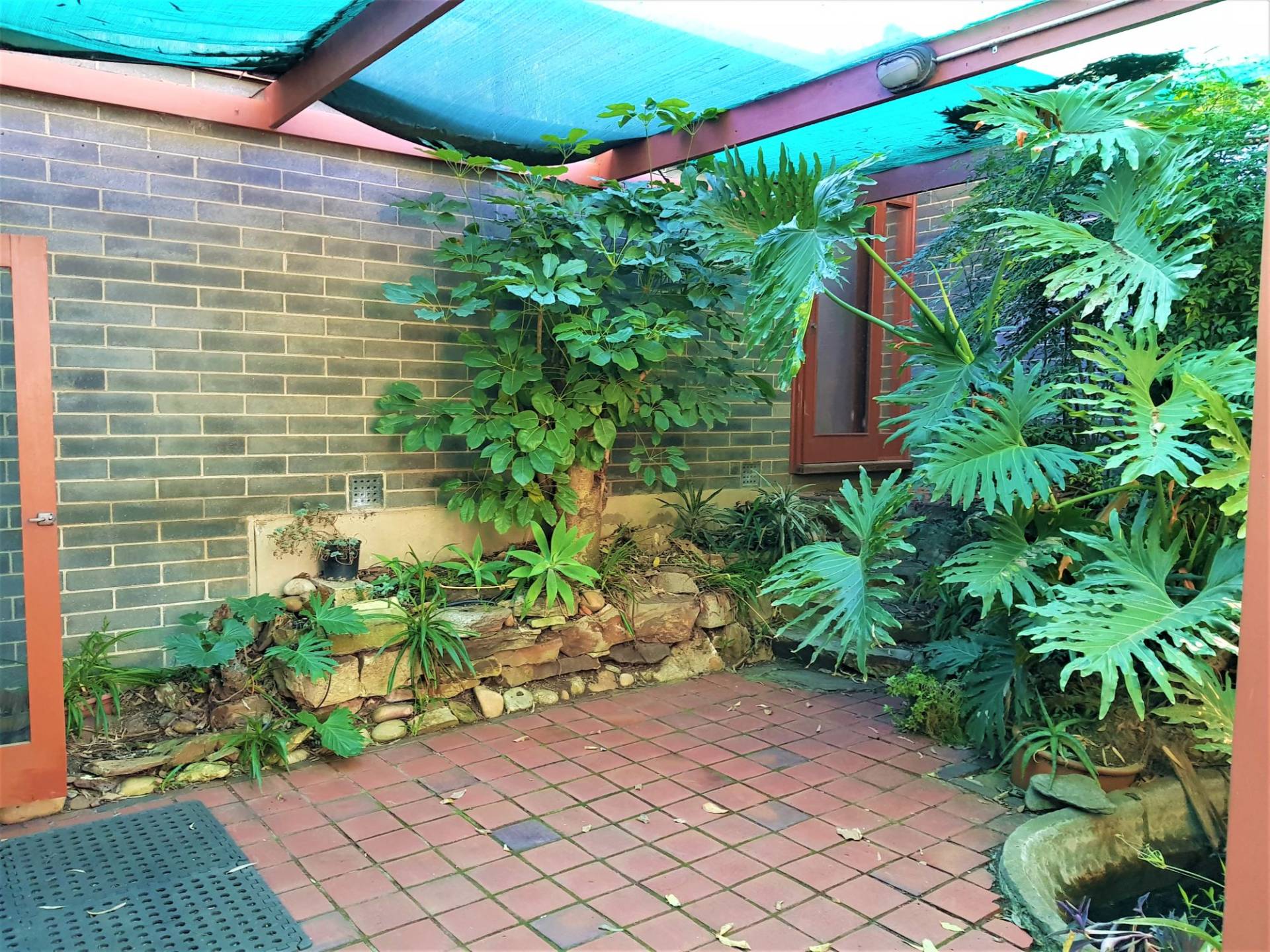 -Fully fenced yard with paved courtyards and beautiful greenery