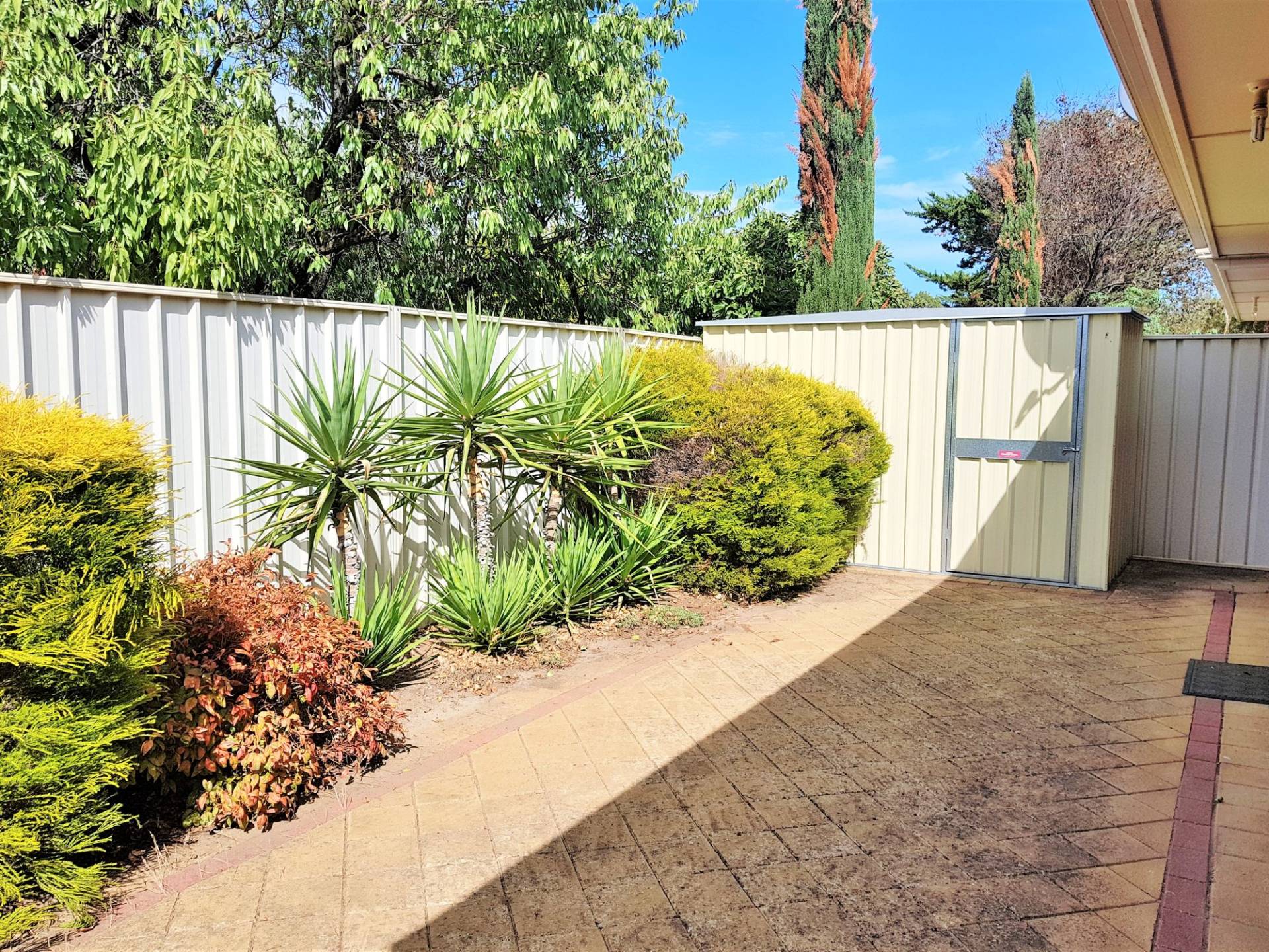 -Private rear courtyard with garden shed