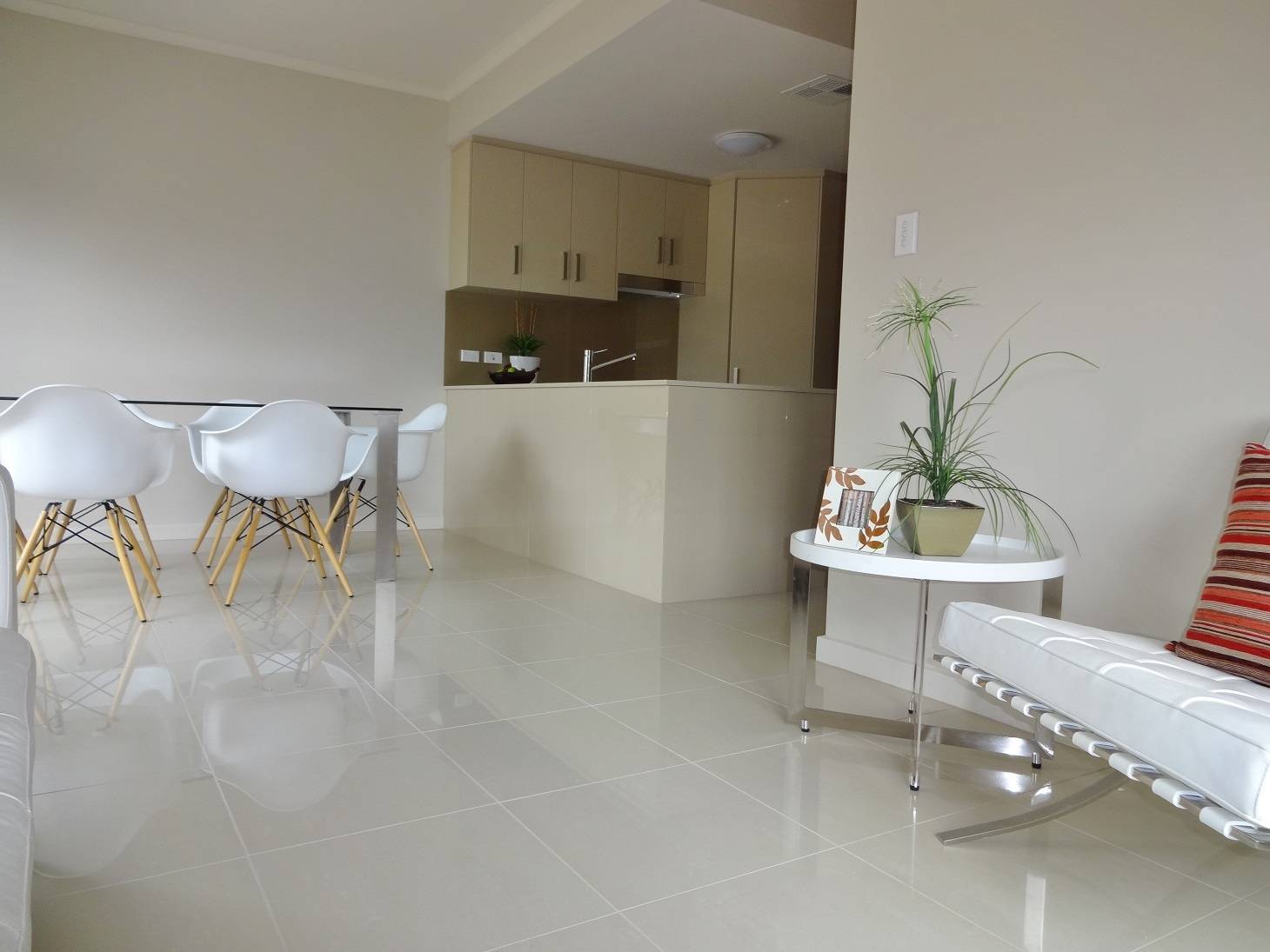 - Tiled open plan kitchen/dining