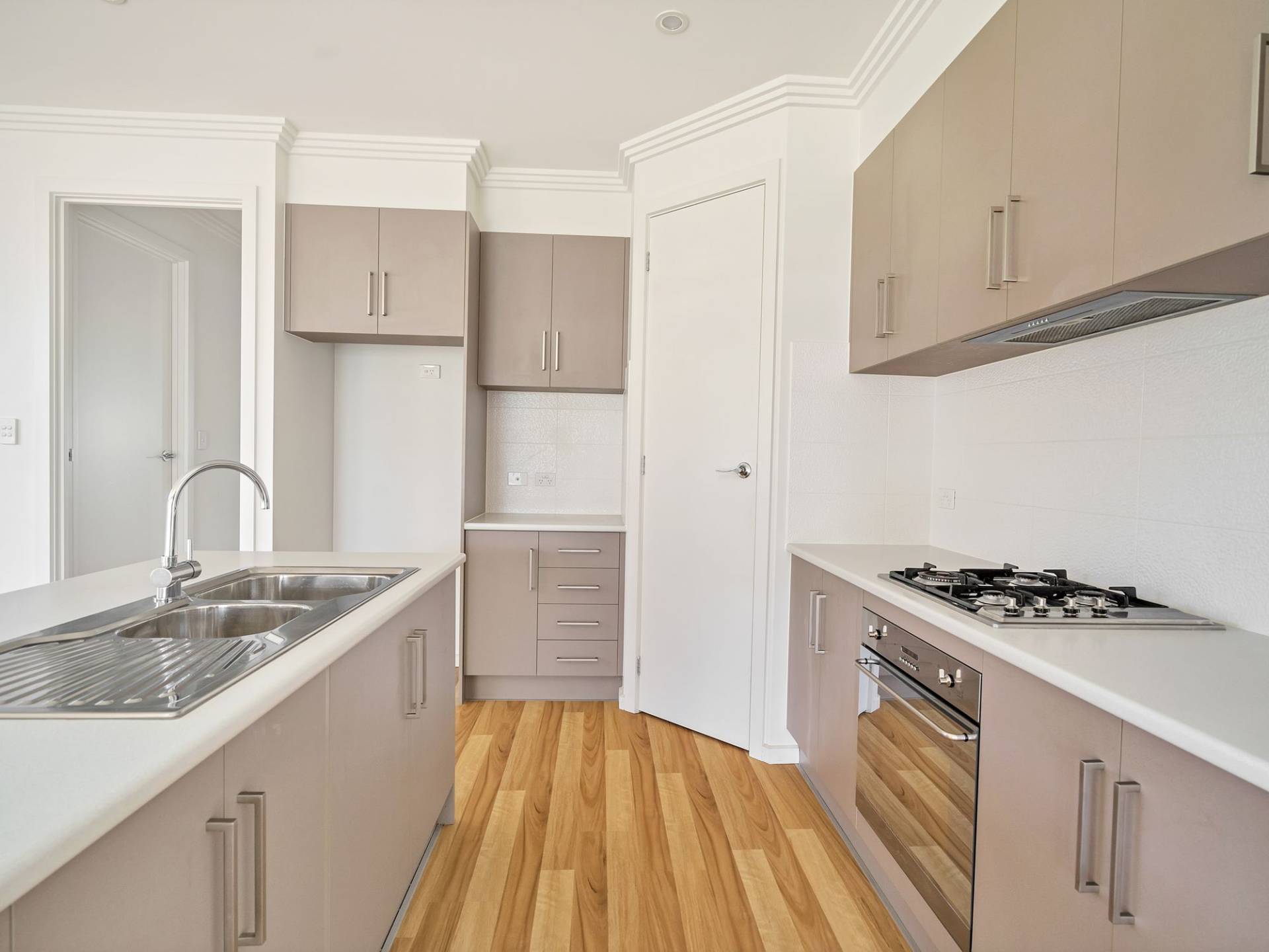 -Sleek modern kitchen with gas stovetop and Elec oven (with provisions for dishwasher if desired)