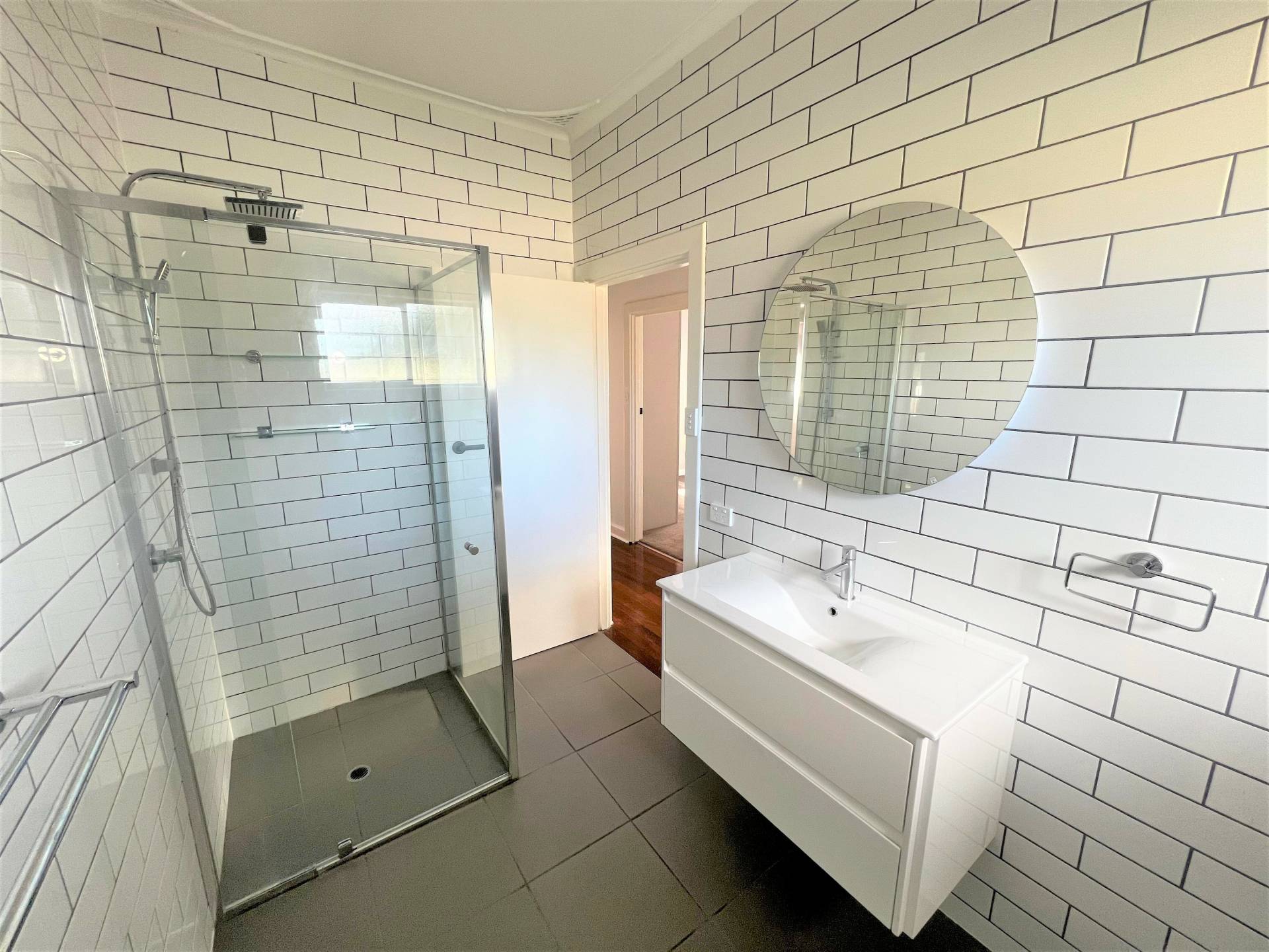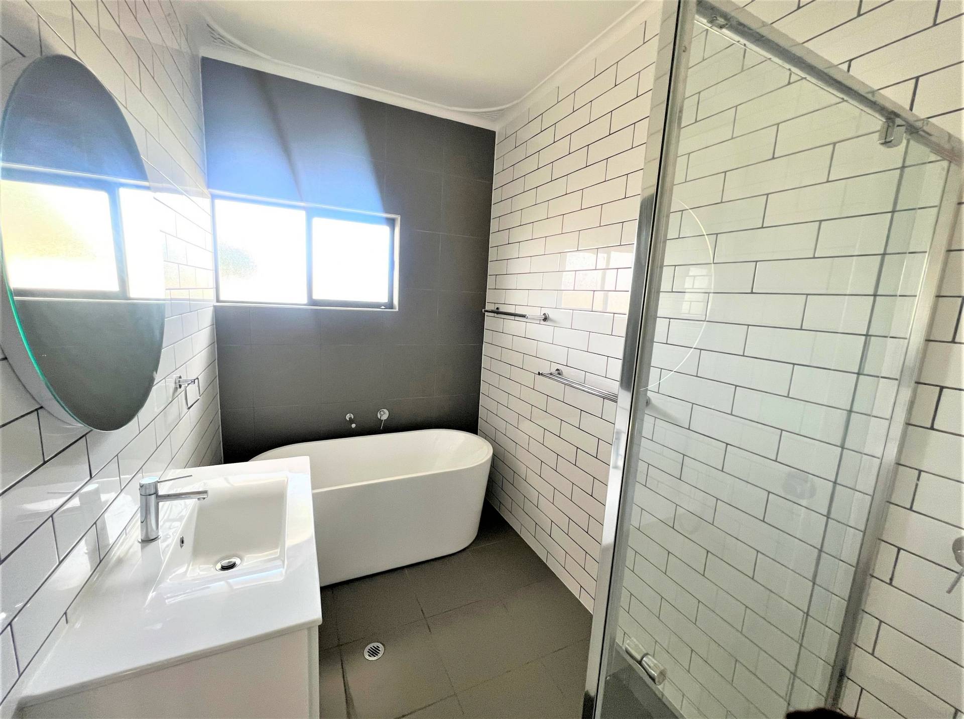 *Renovated bathroom complete with free standing bath and large shower alcove