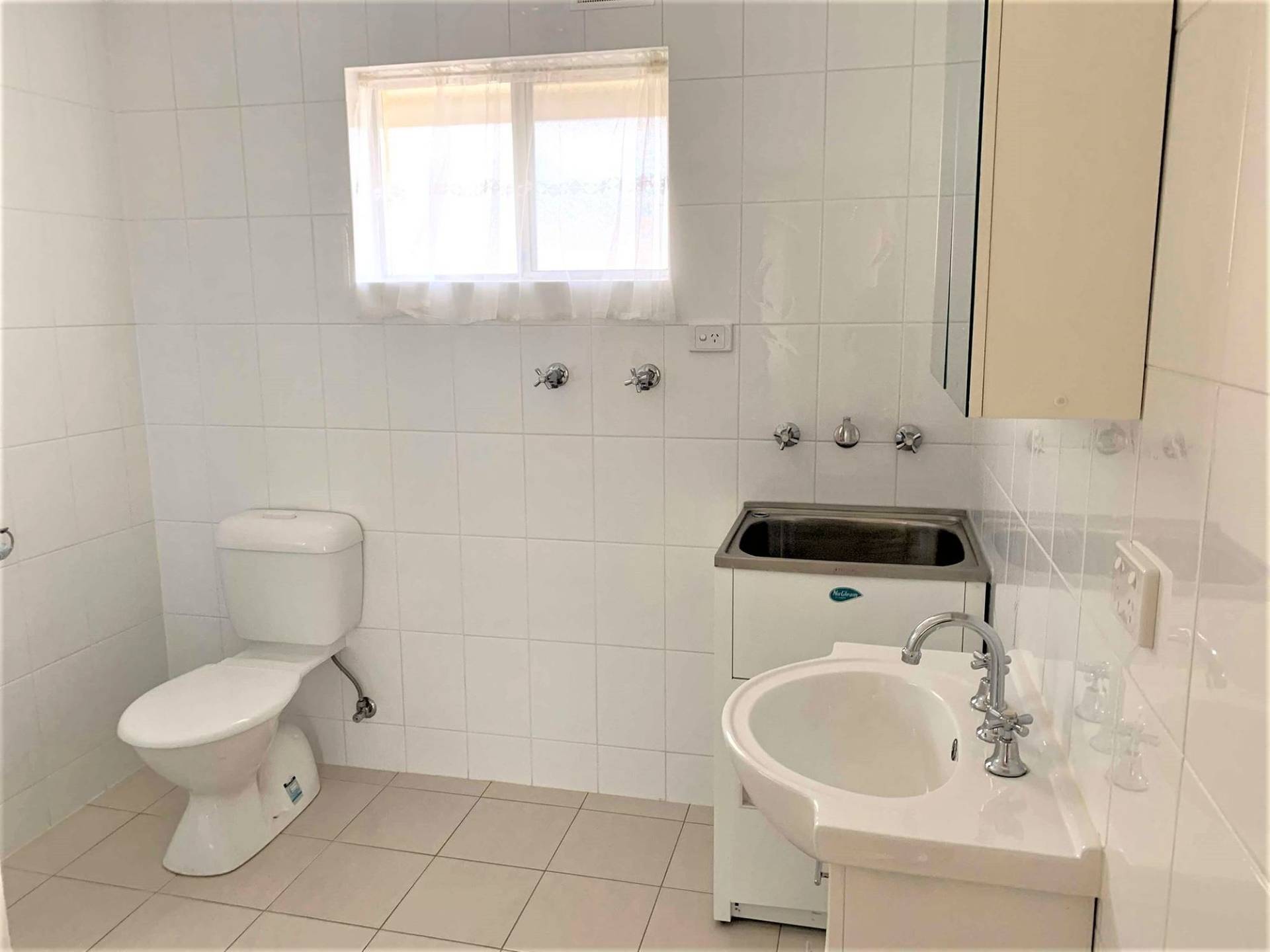 *Spacious combined bathroom and laundry with large shower alcove and plenty of room for washing machine and dryer