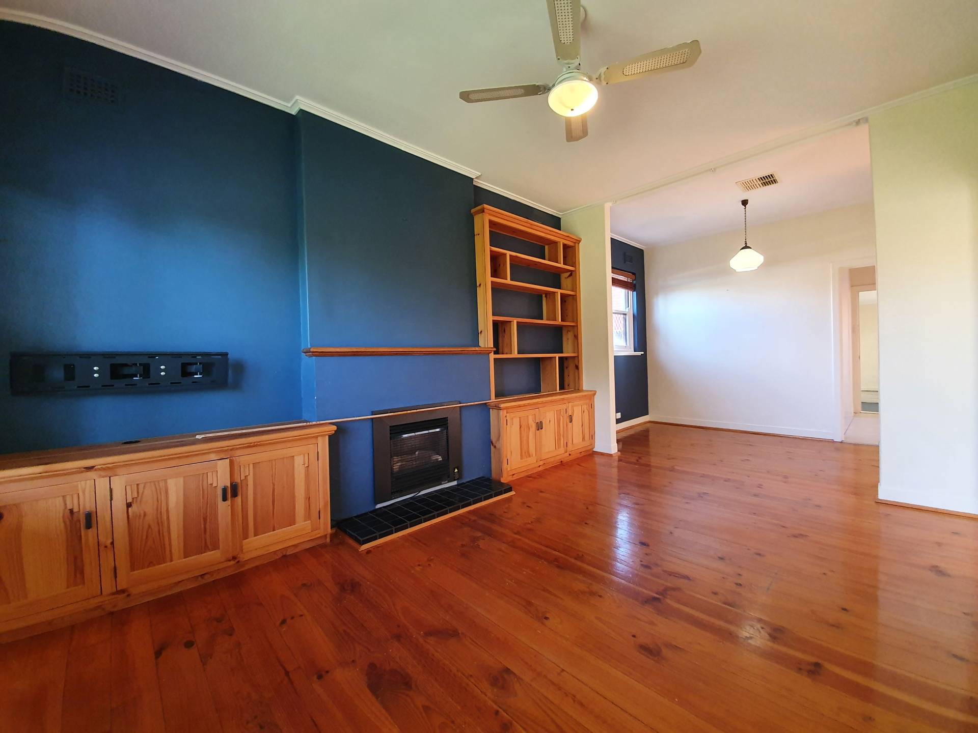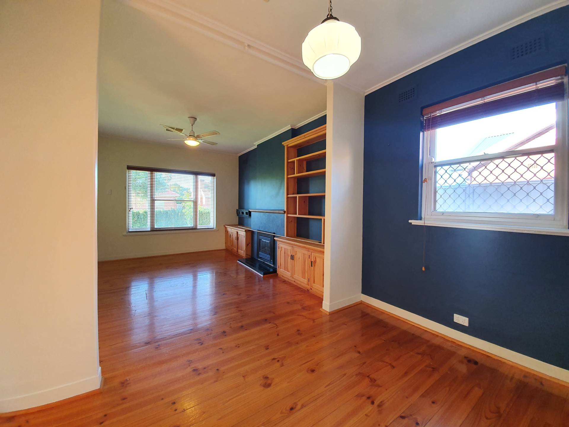 - Character lounge room with polished timber floors and inbuilt cabinetry