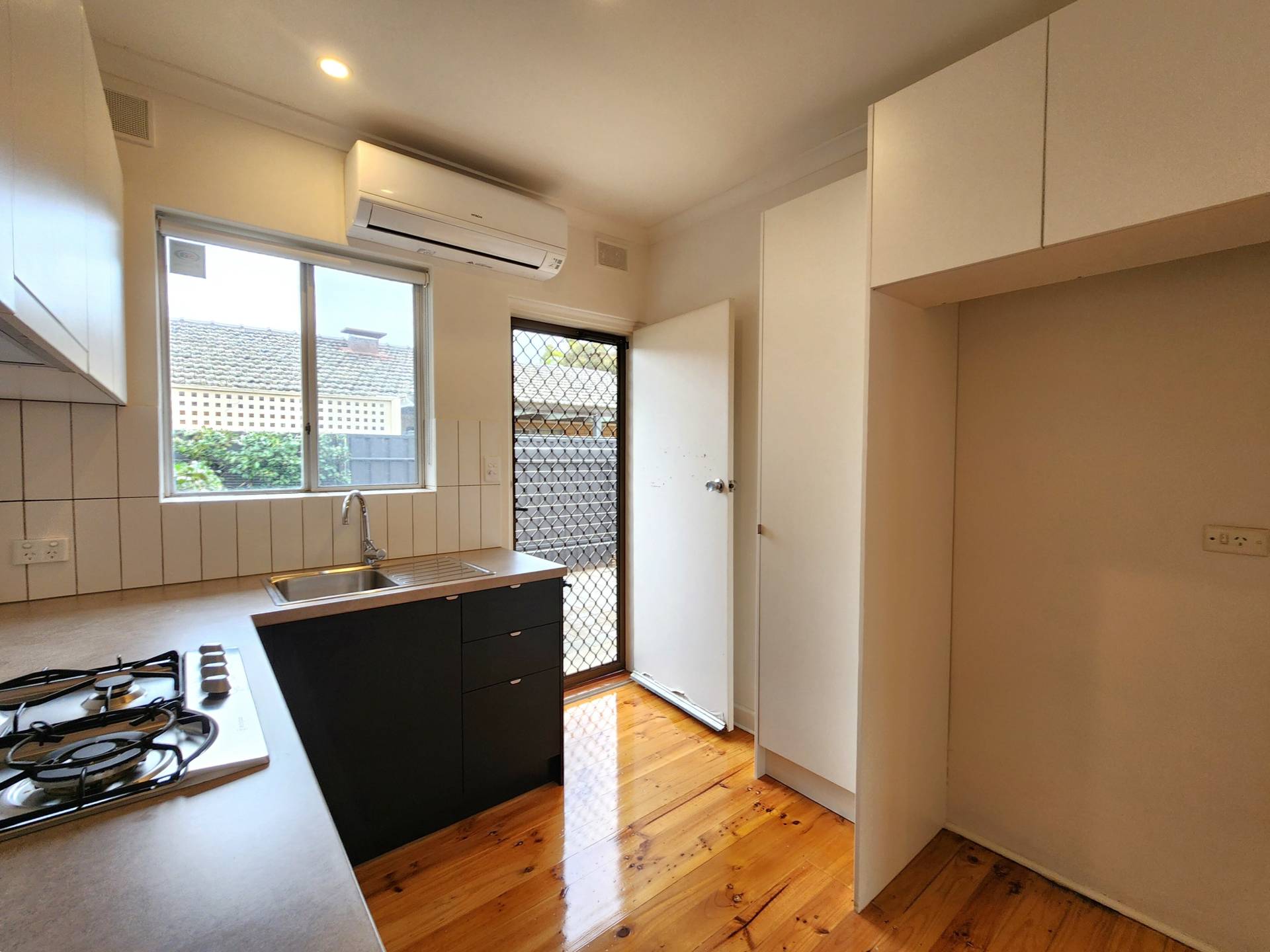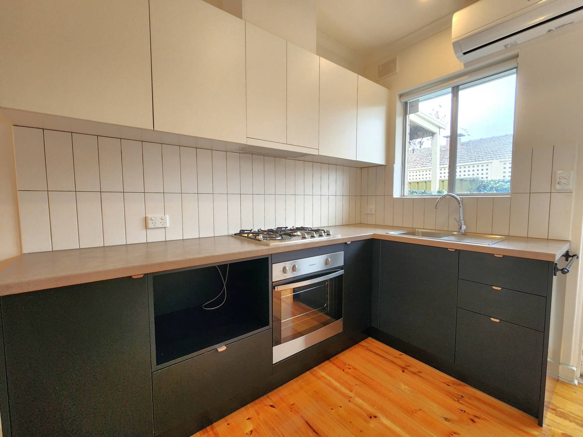 -Light-filled open plan living complete with floorboards & reverse cycle air conditioning