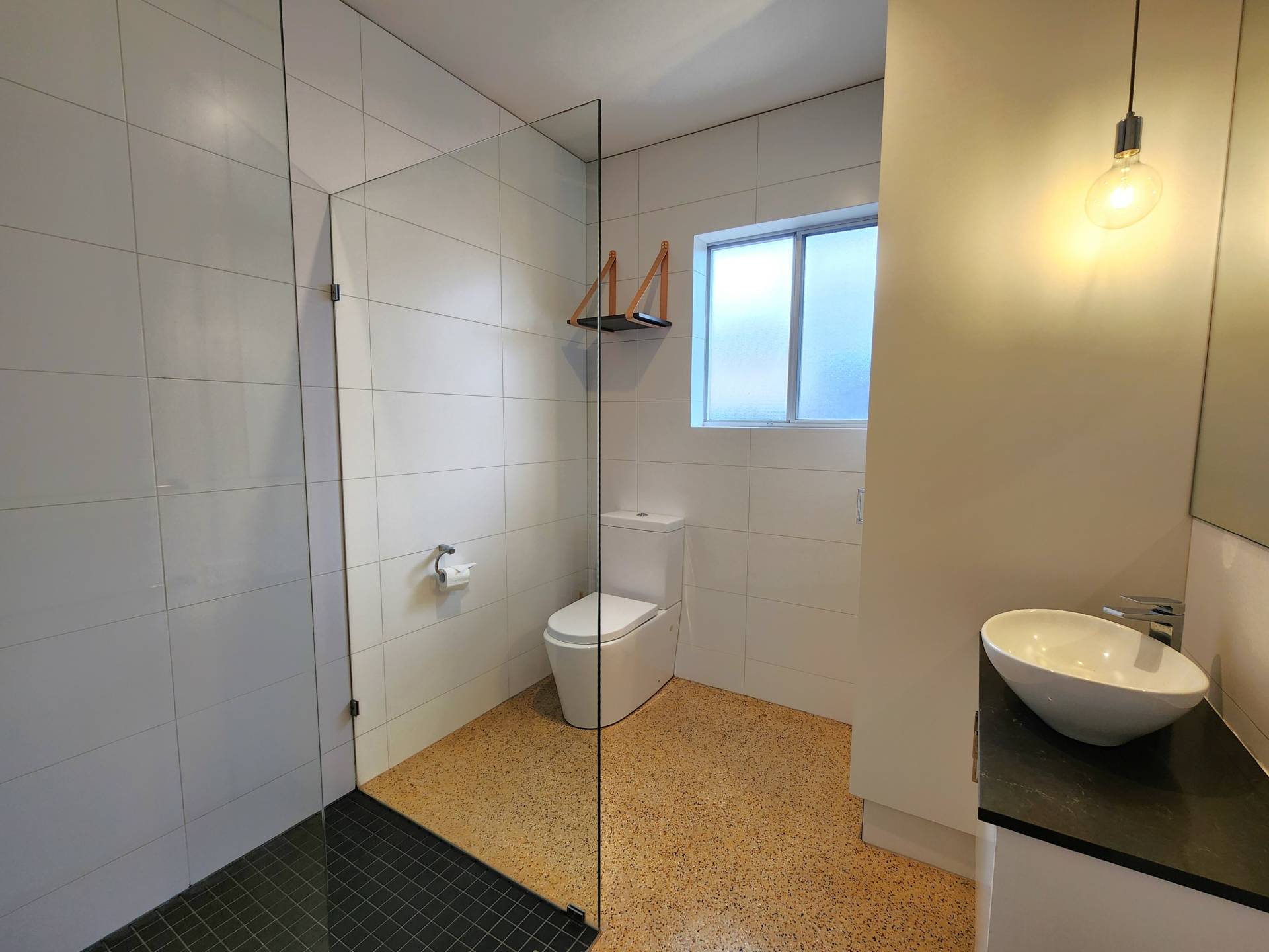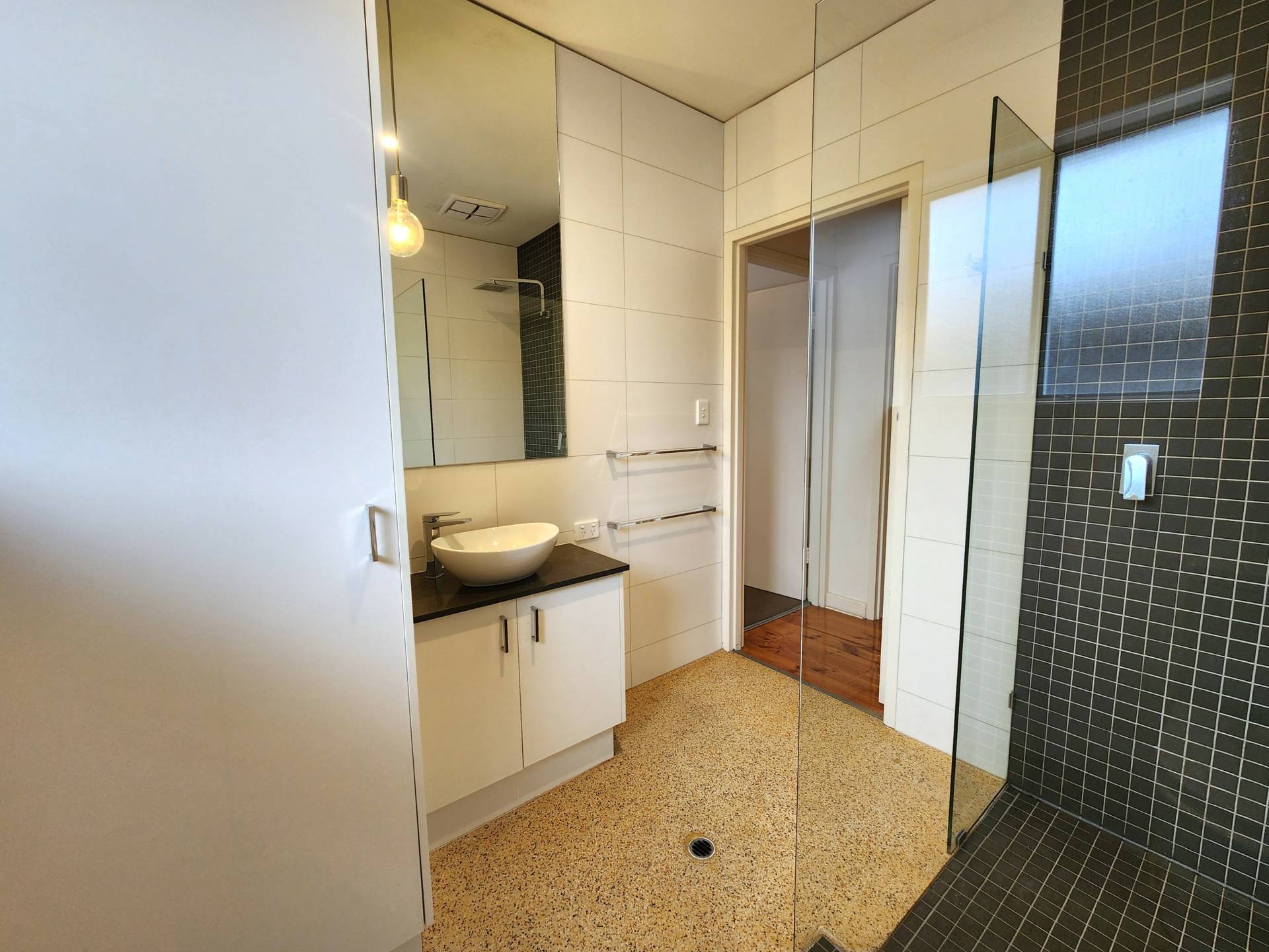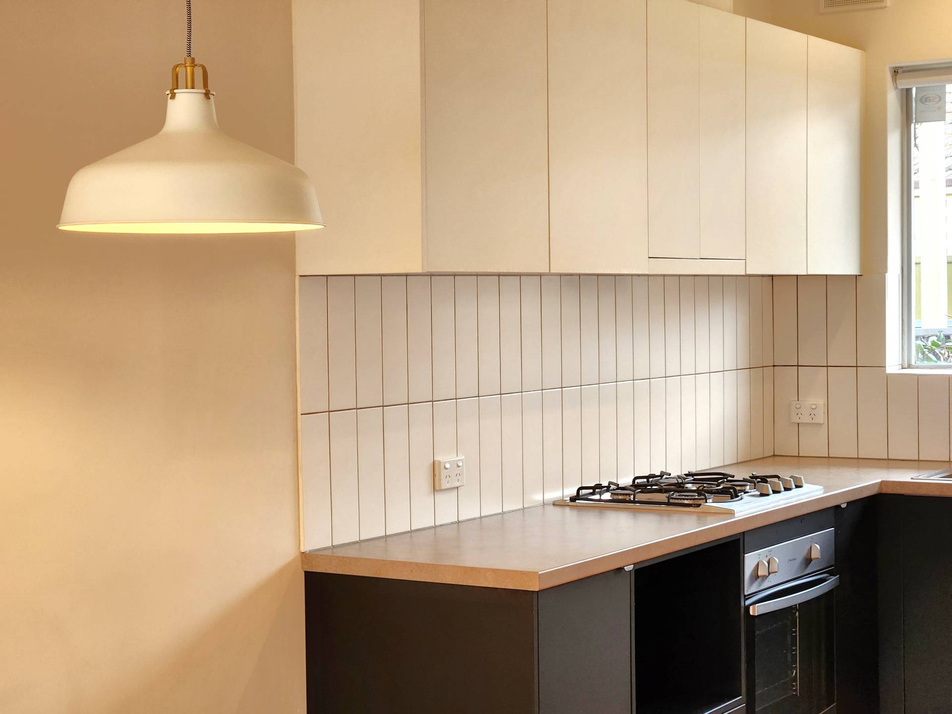 -Beautiful fit-out with pendant lights & white timber venetians